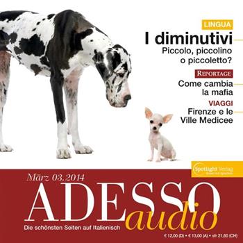 Verkleinerungsformen spielen in der italienischen Sprache eine große Rolle und sind nicht ganz einfach. Unser Speciale lingua hilft Ihnen dieses Mal, Diminutive zu bilden. Der große Reiseartikel ist diesen Monat Florenz und den Medici-Villen gewidmet. Und unsere Reportage befasst sich mit dem brisanten Thema "Mafia". Hören und Verstehen ist der beste Weg zum perfekten Italienisch. Das italienische Sprachtraining bietet Ihnen in ca. 60 Minuten interessante Beiträge, Interviews und Hintergrundberichte aus der italienischsprachigen Welt. Die Texte werden von Muttersprachlern vorgetragen. Neben O-Ton-Interviews und Kultur-Tipps enthält jeder Audio-Download eine umfangreiche journalistische Reportage und einen sprachlichen Schwerpunkt zu italienischer Grammatik und italienischem Wortschatz. Inhalt: mp3-Download inkl. 28-seitigem Booklet mit allen gesprochenen Texten zum Nachlesen und zweisprachigem Glossar (PDF-Format), Sprache: Italienisch, Erscheinungsweise: Monatlich.
