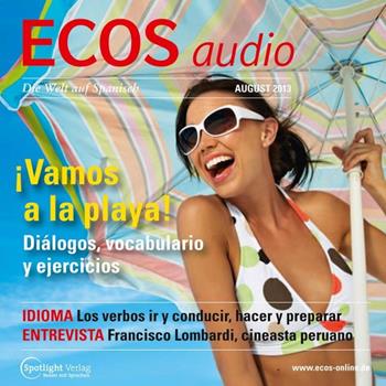 Der Sommer ist da, wir gehen an den Strand und lernen, wie die ganzen Dinge heißen, die wir mitnehmen müssen: Sonnencreme, Badehose, Handtuch, Taucherbrille und vieles mehr. Außerdem hören wir Gespräche über die Hitze und das Strandleben und können anhand einiger Übungen den neuen Wortschatz ausprobieren. Muße für Kultur haben wir auch: Der peruanische Filmemacher Francisco Lombardi steht uns in einem Interview Rede und Antwort. Hören und Verstehen ist der beste Weg zum perfekten Spanisch. Das spanische Sprachtraining bietet Ihnen in ca. 60 Minuten interessante Beiträge, Interviews und Hintergrundberichte aus der gesamten spanischsprachigen Welt. Die Texte werden von Muttersprachlern vorgetragen. Ob verschiedene Dialekte oder Ausdrucksweisen - mit ECOS Audio lernen Sie ganz leicht die verschiedenen Facetten der spanischen Sprache kennen. Neben O-Ton-Interviews und Kultur-Tipps enthält jeder Audio-Download eine umfangreiche journalistische Reportage und einen sprachlichen Schwerpunkt zu spanischer Grammatik und spanischem Wortschatz. Inhalt: mp3-Download inkl. 28-seitigem Booklet mit allen gesprochenen Texten zum Nachlesen und zweisprachigem Glossar (PDF-Format), Sprache: Spanisch, Erscheinungsweise: Monatlich.