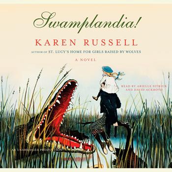 From the celebrated twenty-nine-year-old author of the everywhere-heralded short-story collection St. Lucy’s Home for Girls Raised by Wolves (“How I wish these were my own words, instead of the breakneck demon writer Karen Russell’s . . . Run for your life. This girl is on fire”—Los Angeles Times Book Review) comes a blazingly original debut novel that takes us back to the swamps of the Florida Everglades, and introduces us to Ava Bigtree, an unforgettable young heroine. The Bigtree alligator-wrestling dynasty is in decline, and Swamplandia!, their island home and gator-wrestling theme park, formerly #1 in the region, is swiftly being encroached upon by a fearsome and sophisticated competitor called the World of Darkness. Ava’s mother, the park’s indomitable headliner, has just died; her sister, Ossie, has fallen in love with a spooky character known as the Dredgeman, who may or may not be an actual ghost; and her brilliant big brother, Kiwi, who dreams of becoming a scholar, has just defected to the World of Darkness in a last-ditch effort to keep their family business from going under. Ava’s father, affectionately known as Chief Bigtree, is AWOL; and that leaves Ava, a resourceful but terrified thirteen, to manage ninety-eight gators and the vast, inscrutable landscape of her own grief. Against a backdrop of hauntingly fecund plant life animated by ancient lizards and lawless hungers, Karen Russell has written an utterly singular novel about a family’s struggle to stay afloat in a world that is inexorably sinking. An arrestingly beautiful and inventive work from a vibrant new voice in fiction.