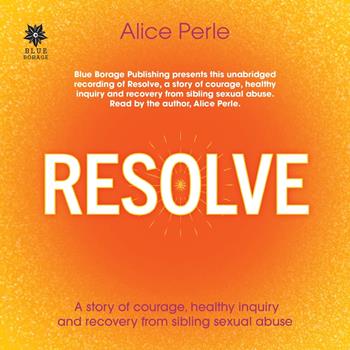 Blue Borage Publishing presents this unabridged recording of Resolve: a Story of Courage, Healthy Inquiry and Recovery from Sibling Sexual Abuse. Read by the Author, Alice Perle. Resolve is an intimate, wild ride from darkness and confusion to triumphant self-determination and inner peace. Living with a dark secret inside her, Alice Perle has overcome many obstacles on her path to healing in the shadow of sibling sexual abuse. Needing to understand her experiences at a deeper level, Alice's personal story is interwoven with her fascinating explorations of societal and intergenerational factors. Resolve showcases an eclectic approach to healing that helped Alice reclaim her true self, freeing her to create a bright, joyous, peaceful life. Respectfully and sensitively written, Resolve is infused with hope and optimism. It is an inspiring story, offering us an intriguing window into one woman's experience recovering from sibling sexual abuse - the hidden taboo. The most recent global five-star Amazon Review: 'Subject which needs wider public attention. Sibling sexual abuse is the most common form of intra-familial child sexual abuse, at least 3x more common than parent/child incest. Yet it's rarely talked about in society or reported by the media. Charting the author's experience of sibling sexual abuse over many years, her disclosure in adulthood and her journey towards healing and recovery, this powerfully written book should be essential reading for all social workers, counsellors and mental health specialists as well as anyone personally affected by this issue. Gritty, truthful and ultimately uplifting and redemptive - an outstanding work that deserves a wide audience.' - Stuart Allardyce, Director, Stop It Now! UK and Ireland, | Lucy Faithfull Foundation UK and co-author, with Peter Yates, of 'Sibling Sexual Abuse: A Knowledge and Practice Overview' for the Centre of Expertise on Child Sexual Abuse.