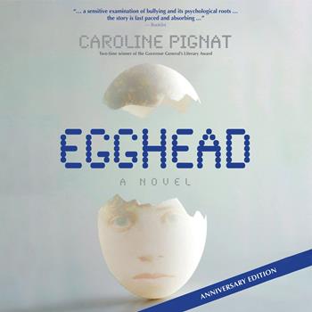 Will Reid is a gawky kid who wears fake turtlenecks, is obsessed by his ant farm project, and is lousy at gym. In other words, he's the perfect target for Shane, the Grade 9 bully. Katie has been Will's friend in elementary school, but defending him in the high school environment comes at an unforeseen cost - she dreads the rumours that link them in a boyfriend/girlfriend way she's never considered. Devan has been part of Shane's bullyboy team until now, when he comes to realize that it's not so smart to mindlessly back up each nasty attack of Shane's. Together the three young teens are struggling to find their way out of one of the classic dilemmas of life: how not to be a bystander to bullying, how to stand up for your friends, and how to deal with consuming rage. Young readers will find lots to think about as they turn the pages of this crisp and compelling story by newcomer Caroline Pignat. Each character takes a turn at telling the story — through the spare blank verse of Will, wrapped up in the world of his single-parent father and his own eccentric preoccupations; through the clear-eyed accounts of Katie, wrestling with her own private demons; and in the sensitive narrative of the slowly awakening Devan, who comes to notice Katie as a spunky, attractive individual whom he'd like to know better but fears thinks he's a goof. Kids Help Phone's has included Egghead on their site as a book to help kids in their 'Get Information' section under Bullying for Ages 13 and Up.