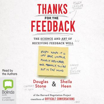 We get feedback every day of our lives, from friends and family, colleagues, customers, and bosses, teachers, doctors, and strangers. We're assessed, coached, and criticised about our performance, personalities and appearance. We know that feedback is essential for professional development and healthy relationships – but we dread it and even dismiss it. That's because while we want to learn and grow, we also want to be accepted just as we are. Thanks for the Feedback is the first book to address this tension head on. In it, the world-renowned team behind the Harvard Negotiation Project offer a simple framework and powerful tools, showing us how to take on life's blizzard of comments and advice with curiosity and grace.