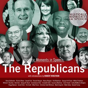 Republican Party spokespeople include presidents, advisors, and candidates. Speeches are given by Barry Goldwater, Richard Nixon, Ronald Reagan, George H. W. Bush, George W. Bush, Donald Trump, and others. Words that support the party line and are meant to win elections. Produced by the Speech Resource Company and fully narrated by Robert Wikstrom. Barry Goldwater, RNC Nomination Acceptance SpeechRichard Nixon, RNC Nomination Acceptance SpeechGerald Ford, Address to Congress, “Whip Inflation Now”Ronald Reagan, Speech to Congress, “Economic Recovery”Nancy Reagan, Address to 1988 Republican National ConventionPat Robertson, 1988 RNC Convention speechGeorge H. W. Bush, 1989 Inauguration SpeechMilton Friedman, “Rise of Socialism”William F. Buckley, “Premise of Liberalism”Bob Dole, “Political Wit”George W. Bush, Address to Congress following 9/11 attacksCondoleezza Rice, “Perspectives on Leadership”Elizabeth Dole, Leadership Award at Trevecca Nazarene UniversitySusanna Martinez, Address at 2012 RNC ConventionColin Powell, Commencement Address at High Point UniversityCathy McMorris Rodgers, 2015 CPAC SpeechPeggy Noonan, Address at Ronald Reagan LibrarySarah Palin, Speech at Western Conservative SummitTim Scott, Address to Congress on “Race Relations”Mike Pence, Indiana Veterans Day CeremonyChristine Todd Whitman, Future of Ocean SymposiumNewt Gingrich, Address to Heritage FoundationNikki Haley, Speech to U.N. on North KoreaDonald Trump, Address to the United Nations on Iran Nuclear Deal