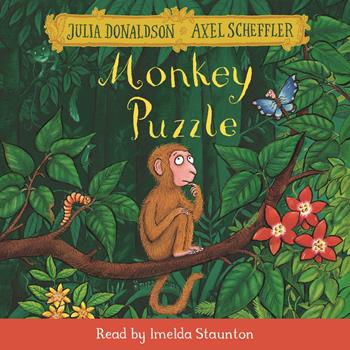 Read by actress Imelda Staunton, Monkey Puzzle is a clever, funny and charming tale from the unparalleled picture book partnership of Julia Donaldson and Axel Scheffler, creators of The Gruffalo. This audiobook edition also includes a song and a read along track. "I've lost my mum!" Where is Monkey's mummy? It's not too much fun being lost in the jungle, and little monkey wants his mum. A kindly butterfly is keen to help, but they don't seem to be having much luck and keep finding the wrong animals! But eventually, they find . . . Dad! It's just as well that he knows exactly where mum is, and she's waiting with a well-deserved cuddle. Perfect for listening to at home, in the car, at bedtime – or any time at all!