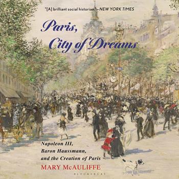 Bloomsbury presents Paris, City of Dreams by Mary McAuliffe, read by Tim H. Dixon. "Armchair historians in particular will appreciate McAuliffe’s readable yet detailed history" Booklist, Starred Review Acclaimed historian Mary McAuliffe vividly recaptures the Paris of Napoleon III, Claude Monet, and Victor Hugo as Georges Haussmann tore down and rebuilt Paris into the beautiful City of Light we know today. Paris, City of Dreams traces the transformation of the City of Light during Napoleon III’s Second Empire into the beloved city of today. Together, Napoleon III and his right-hand man, Georges Haussmann, completely rebuilt Paris in less than two decades—a breathtaking achievement made possible not only by the emperor’s vision and Haussmann’s determination but by the regime’s unrelenting authoritarianism, augmented by the booming economy that Napoleon fostered. Yet a number of Parisians refused to comply with the restrictions that censorship and entrenched institutional taste imposed. Mary McAuliffe follows the lives of artists such as Edouard Manet, Berthe Morisot, and Claude Monet, as well as writers such as Emile Zola, Gustave Flaubert, and the poet Charles Baudelaire, while from exile, Victor Hugo continued to fire literary broadsides at the emperor he detested. McAuliffe brings to life a pivotal era encompassing not only the physical restructuring of Paris but also the innovative forms of banking and money-lending that financed industrialization as well as the city’s transformation. This in turn created new wealth and lavish excess, even while producing extreme poverty. More deeply, change was occurring in the way people looked at and understood the world around them, given the new ease of transportation and communication, the popularization of photography, and the emergence of what would soon be known as Impressionism in art and Naturalism and Realism in literature—artistic yearnings that would flower in the Belle Epoque. Napoleon III, whose reign abruptly ended after he led France into a devastating war against Germany, has been forgotten. But the Paris that he created has endured, brought to vivid life through McAuliffe’s rich and evocative narrative.