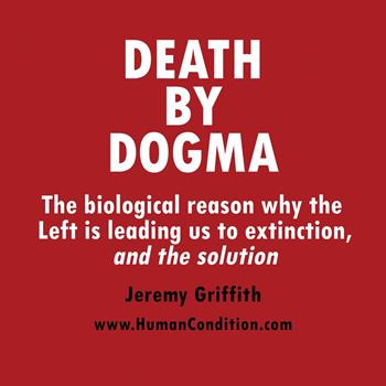 Death by Dogma is a companion to THE Interview, the transcript of biologist Jeremy Griffith's ground-breaking interview that solves the human condition and saves the world - an interview described by Professor Harry Prosen, a former president of the Canadian Psychiatric Association, as 'the most important interview of all time'! In Death by Dogma, Griffith explains that the Left's dogmatic insistence that everyone behave in a cooperative and loving way makes its advocates feel good but it oppresses and stifles the freedom of expression needed to find knowledge, ultimately self-knowledge, the redeeming understanding of the human condition that actually brings about a cooperative and loving world. Dogma is not the cure, it's the poison because it blocks the search for the rehabilitating understanding of ourselves that's needed to actually save the world. George Orwell's famous prediction that 'If you want a picture of the future, imagine a boot stamping on a human face [the human mind] for ever' was about to come true - but mercifully, science has finally made it possible to explain the human condition and save us from this makes-you-feel-good-but-is-actually-horrifically-selfish-and-deluded left-wing threat of the Death by Dogma extinction of our species! This booklet is supported by a very informative website at HumanCondition.com