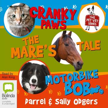 Trump the Animal Liaison Officer has her paws full with Dr Jeanie’s new patient. Cranky Paws the cat hates everyone; people, dogs, cats, and other animals. Dr Jeanie can heal her injuries, but what will happen after that? Is there anyone who can offer Cranky Paws a home? And will Cranky Paws accept? Trump has a new case when she accompanies Dr Jeanie on a visit to a mare named Helen of Troy. Helen is due to have a foal, but her close companion, Paris the Dalmatian, isn’t well. How can Trump persuade Helen to put Paris’s needs before her own? And how can she persuade Paris? Trump meets happy-go-lucky Motorbike Bob, the dog who believes he’ll never need a vet. Meanwhile, Dr Jeanie must deal with some ponies that have sore eyes.