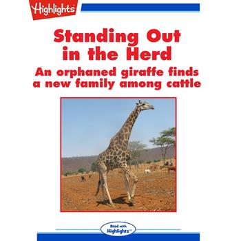 Article about orphaned giraffe that finds a new home in a herd of domesticated cattle.