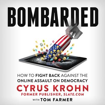 A powerful assessment of how online information became unreliable—and what can be done about it. - Kirkus Reviews Imagine an imminent America where citizens are bombarded with personalized political messages from every smart device – yet information is so suspect, nobody can tell what the truth is. It means oceans of disinformation engineered to sow false beliefs or simply disorient. The coronavirus pandemic provided a foretaste of an infuriating, dystopian future. From the start Americans fought over the most basic facts of the crisis, from death tolls to quack cures to the wisdom of stay-at-home orders. The splintered digital infosphere bred confusion and delusion, some of it fatal. Now think of our campaigns and elections. The digital information age means more than hyper-targeted, just-for-you messages from insurance companies and presidential candidates alike. “Trying to shield yourself from disinformation and deep fakes? Cyrus Krohn offers a ‘five-step program’ to fight back. This book rings true." —Jill Dougherty, Former CNN Moscow Bureau Chief Big Data is on the way to fueling information environments so fine-tuned, no two of us hold the same view of reality, and no two voters hear the same pitch. Already, citizens don’t know who to trust or what to believe – about COVID-19 or anything else. If we ask nothing more of tech providers or digital citizens, the fog will continue to thicken. Irritation will merge into despair and then numbness... and democracy teeters. Digital pioneer Cyrus Krohn knows the territory, and in Bombarded: How to Fight Back Against the Online Assault on Democracy, Krohn locates the roots of our blooming political chaos in the earliest days of the World Wide Web. But he goes beyond recounting 25 years of destabilizing Internet shock waves and his own role in building digital culture. Krohn rolls out a provocative action plan for rescuing the American system of campaigns and elections while there is still time.