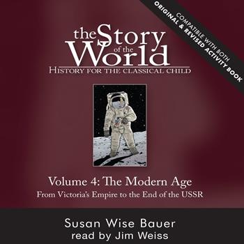 History will never be the same again! This spirited reading of the newly revised fourth edition in Susan Wise Bauer's Story of the World history series brings to life the stories and records of the peoples of the modern age. Now more than ever, other countries and customs affect our everyday lives-and our children need to learn about the people who live all around the globe. Susan Wise Bauer has provided a captivating guide to the history of the modern world. Written in an engaging, straightforward manner, The Story of the World weaves world history into a storybook format. This newly revised volume covers the major historical events of the years 1850 to the late 1990s, from the reign of England's Queen Victoria to the collapse of the Berlin Wall. This Story of the World audiobook is a collaboration between Jim Weiss, whose voice has been described as "liquid gold" (CNN-TV), and Susan Wise Bauer, whose writing has been described as "timeless and intelligent" (Publishers Weekly). It may be used along with the print books (The Story of the World Volume 4, Revised Edition Text Book, Activity Book, and Test and Answer Key; each sold separately), as a supplement to a traditional history curriculum, or independently. Approximately 12 hours.