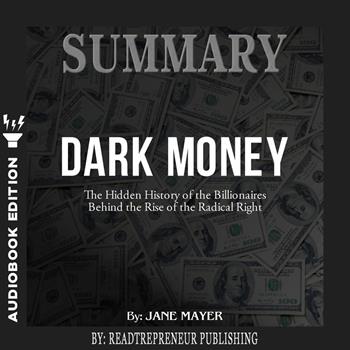 Dark Money: The Hidden History of the Billionaires Behind the Rise of the Radical Right by Jane Mayer Book Summary Readtrepreneur (Disclaimer: This is NOT the original bookm but an unofficial summary.) If you care about the future of American democracy, you must mark this book as "must read". Dark Money on top of its awesome title, offers an in-depth analysis of the current political/economic status of the United States of America. It mainly focuses on the economic inequality that has overwhelmed the country and the negligent decisions disregarding the environment's well-being. (Note: This summary is wholly written and published by Readtrepreneur. It is not affiliated with the original author in any way) "Without the rigorous peer-reviewed standards previewed by prestigious academic publications, the Olin Foundation was able to inject into the mainstream a number of works whose scholarship was debatable at best." - Jane Mayer In Dark Money, Jane Mayer debunks a common belief about the reason behind the economic and political state of the country. With a large amount of evidence, she showed how a network of incredibly wealthy people played a big role on bending the American political system to their will. At the end of the book, you will learn a large array of things you thought you knew and learn so much about politics and economics along the way. P.S. Dark Money is an enriching book that will teach you how America is run and how it affects you. The Time for Thinking is Over! Time for Action! Scroll Up Now and Click on the "Buy now with 1-Click" Button to Download your Copy Right Away! Why Choose Us, Readtrepreneur? ? Highest Quality Summaries ? Delivers Amazing Knowledge ? Awesome Refresher ? Clear And Concise Disclaimer Once Again: This book is meant for a great companionship of the original book or to simply get the gist of the original book.