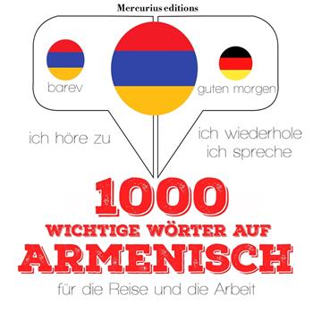 1000 wichtige Wörter auf Armenisch für die Reise und die Arbeit. Armenisch ist die Amtssprache der Republik Armenien. Die Gesamtzahl der Referenten wird auf über acht Millionen geschätzt, davon knapp drei Millionen in Armenien. Derzeit ist es unerlässlich, Fremdsprachen zu sprechen. Wie lernt man eine Sprache anders ? Revolution im Sprachenlernen heute: Sie müssen nicht mehr in den Sprachunterricht gehen. Du hörst konzentriert zu , du wiederholst, und du sprichst .Was für uns wichtig ist sind Aussprache, Wiederholen des Gehörten, aufmerksames Zuhören, im Zusammenhang mit Worten, wichtigen Sätzen und einer Vokabelliste. Seit Jahrzehnten hat sich die Wiederholung in Abständen als eine effektive Lernmethode erwiesen. Wir haben das Vokabular nach Nutzungshäufigkeit ausgewählt, und wir schlagen vor, Ihnen die 20% der Wörter beizubringen, die in 80% der Fälle verwendet werden. Das endgültige Ziel ist es, ein ausreichendes Niveau in einer Sprache zu erhalten, in der Lage zusein, einfache Gespräche zu führen, einen einfachen Austausch in Situationen des täglichen Lebens bewältigen zu können.