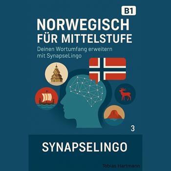 Hörbuch inkl. Audiozugang & Lernsoftware per Link. Dieses Hörbuch ist dein nächster Schritt im Norwegischlernen – speziell für deutschsprachige Lernende, die bereits Grundlagen beherrschen und nun sicherer, vielseitiger und natürlicher sprechen möchten. In Band 3 der Reihe „Norwegisch lernen“ liegt der Fokus auf dem Ausbau deines Wortschatzes: Du lernst wichtige Synonyme, typische Wortverbindungen und alltagstaugliche Ausdrücke, mit denen du dich in Gesprächen präziser und flüssiger ausdrücken kannst. Jede Einheit folgt einem klaren, motivierenden Aufbau: kurze Erklärung auf Deutsch, kompakte Wortschatzlisten mit Synapsen-Logik (Verknüpfungen statt stumpfes Pauken), Beispielsätze und Mini-Dialoge, Aussprache- und Gebrauchshinweise sowie kleine Übungen zur sofortigen Anwendung. Wiederholungen und Checkpunkte helfen dir dabei, neues Vokabular langfristig zu behalten und aktiv abrufen zu können. Damit du nicht nur mehr Wörter kennst, sondern sie auch richtig einsetzt, zeigt dir das Buch typische Unterschiede in Bedeutung und Stil (z. B. formell vs. informell), häufige Fehlerquellen für Deutschsprachige und praktische Merksätze. So wächst nicht nur dein Wortschatz, sondern auch dein Gefühl für idiomatisches Norwegisch. Ideal für Selbstlernende auf Mittelstufe (B1–B2), für Reise- und Alltagskommunikation, Beruf und Studium – und für alle, die beim Sprechen weniger nach Worten suchen und mehr „wie nebenbei“ Norwegisch formulieren wollen. SynapseLingo steht dabei für lernpsychologisch kluge Schritte: kurze Lerneinheiten, häufige Wiederholung und Sprache, die du sofort verwenden kannst.