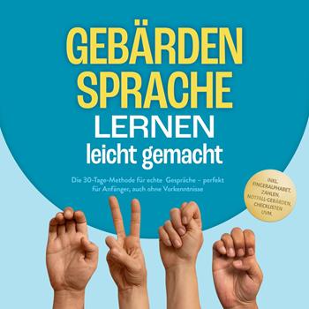 Gebärdensprache: Mit einfachen Erklärungen & Übungen die Grundlagen der Gebärdensprache erlernen und Schritt für Schritt zum Kommunikationsmeister werden Die Sprache der fliegenden Hände fasziniert Sie schon länger? Vielleicht gibt es in Ihrem Umfeld jemanden, der gehörlos ist, und Sie möchten sich mit ihm unterhalten können? Oder Sie interessieren sich einfach für eine ganz besondere Form der Fremdsprache? Dann tauchen Sie mit diesem Hörbuch in die spannende Welt der wortlosen Kommunikation ein! Wer mit Gebärdensprache kaum vertraut ist, geht oft davon aus, dass es sich lediglich um ein paar Handzeichen für die grobe Verständigung handelt. Doch weit gefehlt! Grammatik, Wortschatz, Satzbau – Gebärdende greifen auf eine höchst lebendige und ausdrucksstarke Sprache zurück. Einziger Haken: Oft kennt das Gegenüber sie nicht – doch mit diesem Buch werden Sie in kürzester Zeit zum beliebten Gesprächspartner. Machen Sie sich zunächst mit den wichtigsten Grundlagen vertraut und steigen Sie dann direkt in den Aufbau der Sprache ein: Manuelle Komponente, Verben und Adjektive, Pluralbildung, Satzgefüge und viele weitere Sprachbasics werden verständlich erklärt und mit anschaulichen Skizzen dargelegt, sodass Sie schon bald erste einfache Sätze "sprechen" können. Mit weiterführenden Themen wie Gebärdenschrift, Zahlen, Gebärden für Kinder oder internationaler Gebärdensprache vertiefen Sie Schritt für Schritt Ihre Kenntnisse. Sie sind absoluter Anfänger? Kein Problem! Dieses Hörbuch ermöglicht Ihnen sowohl einen unkomplizierten Einstieg bei Null als auch Fortschritt in genau dem Tempo, das zu Ihnen passt. Mit diesem Hörbuch sind Sie bei Gebärdengesprächen endlich nicht mehr außen vor und erschließen sich ein faszinierendes Gebiet der Unterhaltung. Mit dem zusätzlichen Bonusmaterial "Gebärdensprache für Säuglinge" holen Sie zudem auch die Kleinsten mit ins Boot und legen bereits früh den optimalen Grundstein für weitreichende Kommunikationsfähigkeiten.