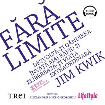 Bestseller New York Times ?i Wall Street Journal Jim Kwik, cel mai bine cotat antrenor al min?ii, a scris un "manual al utilizatorului" pentru ob?inerea formei mentale ideale. Fara limite prezinta tehnici de descatu?are a superputerilor creierului, care ofera capacitatea de a face mai mult, prin modificarea modului de gândire, a motiva?iei ?i a metodelor. De peste 25 de ani, Jim Kwik ajuta oameni de succes din diverse domenii sa-?i elibereze adevaratul poten?ial. În Fara limite, el dezvaluie practici bazate pe dovezi ?tiin?ifice ?i sugestii testate pentru accelerarea înva?arii ?i îmbunata?irea comunicarii, memoriei, concentrarii ?i a citirii rapide, rezultatele fiind rapide ?i vizibile. Jim Kwik este fondator ?i CEO al companiei Kwik Learning ?i expert recunoscut în lume în domeniile citirii rapide ?i înva?arii accelerate, precum ?i al îmbunata?irii memoriei ?i a performan?elor cerebrale. Printre clien?ii lui se numara companii de top ?i universita?i de prestigiu. Este gazda podcastului "Kwik Brain", iar la cursurile online organizate de KwikLearning.com participa studen?i din peste 180 de ?ari. Poate fi contactat la JimKwik.com.