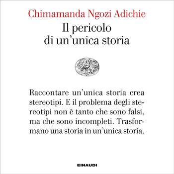 «Quando rifiutiamo l'unica storia, quando ci rendiamo conto che non c'è mai un'unica storia per nessun luogo, riconquistiamo una sorta di paradiso». Cosí si esprime Chimamanda Ngozi Adichie in questo mirabile testo, che riprende la sua prima celebre conferenza TED del 2009. È un libro di estrema universalità e attualità. Riguarda il rischio che corriamo ogni volta che semplifichiamo, vedendo la realtà attraverso un unico punto di vista. Adichie racconta cosí come ha trovato la sua autentica voce culturale. È particolarmente interessante il sovrapporsi di due piani diversi: quello della poetica dello scrittore (la voce che lo scrittore deve trovare); e quello civile e politico: il pericolo di un'unica storia è il pericolo dell'appiattimento culturale, di una visione identitaria che cancella culture e punti di vista alternativi. «Molte storie sono importanti. Le storie sono state usate per espropriare e per diffamare. Ma le storie si possono usare anche per dare forza e umanizzare. Le storie possono spezzare la dignità di un popolo. Ma le storie possono anche riparare quella dignità spezzata».