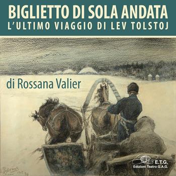 Gli ultimi giorni della vita di Lev Tolstoj, realmente svoltisi come in un romanzo - dalla fuga da casa del grande scrittore, sino alla morte nella minuscola stazione di Astapovo - sono alla base di questo sceneggiato radiofonico che vuole essere testimonianza per il pubblico della personalità e delle idee del grande scrittore russo. Frutto di un attento studio filologico che rende aderente alla storia e credibile il personaggio Tolstoj, le tredici scene di “Biglietto di sola andata”, recitate da 24 personaggi, presentano le sue idee profonde e attualissime sulla coppia, l’amore, la morte, la vecchiaia, con un occhio ironico a poliziotti e giornalisti (la cronaca di questa morte in diretta è forse il primo caso mediatico della storia) e senza privarci di quel lirismo che ha reso indimenticabili le sue pagine di letteratura.