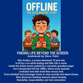 This audiobook is narrated by an AI Voice. Alex Anders, a screen-obsessed 12-year-old, is hit by a car while texting and falls into a coma. Inside his dream world, guided by a sarcastic guardian angel, he’s transported into the 1960s—where every episode contrasts how kids lived then versus now. From stickball and scavenger hunts to vinyl records and talent shows, Alex discovers timeless lessons about honesty, friendship, responsibility, and real connection.