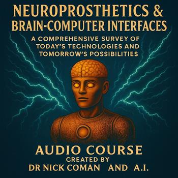 Welcome to the frontier where mind meets machine. This 48-lecture audio course delivers a sweeping, PhD-level exploration of neuroprosthetics and brain–computer interfaces (BCIs), tracing the arc from early electrical experiments to the latest breakthroughs in neural decoding, cortical stimulation, and cognitive enhancement. It weaves together foundational neuroscience, cutting-edge engineering, landmark clinical use cases, and the emerging societal implications of brain–machine integration. Listeners will journey through the biology of neurons and networks, the physics of electrodes and wireless implants, the clinical realities of stroke, ALS, and Parkinson’s disease, and the technological future of memory prosthetics, speech decoding, and real-time brain–AI symbiosis. Along the way, the course tackles the deepest questions: What happens when a mind is routed through a machine? Who owns neural data? And what does it mean to be augmented? Rigorous, narrative-driven, and designed for the intellectually ambitious, this course is an essential guide to one of the most transformative domains in science and technology.