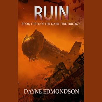 This audiobook is narrated by a digital voice. The Federation lies in ruin. Admiral Martin Rigsby must lead the Federation fleet in a desperate fight against the Krai'kesh, while secret agents, mages, Marines and pilots engage in their own, smaller battles with aliens and traitors alike. If they fail, the entire Federation may fall into ruin. Can they succeed against seemingly impossible odds? The third installment in the Dark Tide Trilogy, "Ruin" is set in the larger Seven Stars Universe and takes place two thousand years after The Shadow Trilogy. Read now to jump into the adventure today.
