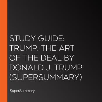 This audiobook is narrated by a digital voice. Analyzing literature can be hard — we make it easy! This in-depth study guide offers summaries & analyses for all 14 chapters of Trump: The Art of the Deal by Donald J. Trump. Get more out of your reading experience and build confidence with study guides proven to: raise students’ grades, save teachers time, and spark dynamic book discussions. SuperSummary Study Guides are written by experienced educators and literary scholars with advanced degrees in relevant fields. Here's what's inside: Chapter-by-chapter summaries— Refresh your memory of key events and big ideas Comprehensive literary analysis — Unlock underlying meaning Examination of key figures in the text — Follow character arcs from tragedy to triumph Discussion of themes, symbols & motifs — Connect the dots among recurring ideas Important quotes with explanations — Appreciate the meaning behind the words Essay & discussion topics — Discover writing prompts and conversation starters