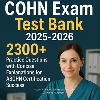 This audiobook is narrated by a digital voice. Master the COHN Certification Exam with Comprehensive Practice Questions and Expert Explanations Prepare for success on the Certified Occupational Health Nurse (COHN) examination with this complete test preparation guide featuring 320 unique practice questions across two full-length exams. Each question mirrors the actual ABOHN certification exam format with detailed explanations to reinforce learning and identify knowledge gaps. What's Inside: Two complete 160-question practice exams simulating the real COHN test experience Mixed difficulty levels from basic concepts to advanced critical thinking scenarios Comprehensive coverage of all exam domains: Clinical Practice, Case Management, Health Promotion, Workplace Safety, Regulatory Issues, and Program Management Brief, focused answer explanations for efficient study sessions Strategic question distribution matching official exam blueprints Real-world occupational health scenarios and applications Key Content Areas Covered: Emergency response and first aid procedures in workplace settings Occupational disease recognition and biological monitoring OSHA regulations, compliance standards, and legal requirements Hazard identification, risk assessment, and control strategies Personal protective equipment selection and respiratory protection programs Ergonomics, injury prevention, and musculoskeletal disorder management Case management principles and return-to-work program development Chemical exposure assessment and industrial hygiene practices Bloodborne pathogen management and infection control protocols Health surveillance, medical screening, and fitness-for-duty evaluations