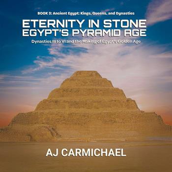 This audiobook is narrated by a digital voice. Eternity in Stone: Egypt's Pyramid Age transports readers into the crucible of Egypt's first golden age, when mudbrick tombs gave way to mountains of stone, and the kings of Dynasties III to VI inscribed their power across the desert horizon. From the sacred necropolis of Abydos to the dazzling innovations at Saqqara, from Memphis's administrative might to Heliopolis's solar theology, this book follows the evolution of Egypt from fragile chiefdoms to the world's first centralized empire. At the center stand Pharaoh Djoser and his visionary architect Imhotep, whose Step Pyramid redefined kingship and architecture alike. The narrative traces the rise of specialized labor, the ideology of divine kingship, the organization of colossal workforces, and the religious imagination that saw pyramids not as tombs, but as cosmic stairways linking earth to heaven. Drawing on archaeology, inscriptions, and cultural history, Eternity in Stone reveals how Egypt's rulers became gods of stone, and how their monuments continue to echo across millennia. This is not just the story of pyramids — it is the story of a civilization inventing eternity.