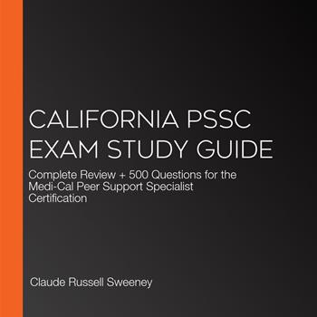 This audiobook is narrated by a digital voice. Master the California PSSC Exam with the Only Complete Study Guide Available! Preparing for your California Medi-Cal Peer Support Specialist Certification? This comprehensive exam prep guide is specifically designed for the 120-question PSSC test administered through Pearson VUE. Complete Exam Coverage: 500+ practice questions with detailed answer explanations All 17 core competencies required by CalMHSA California-specific Medi-Cal regulations and requirements Recovery principles and wellness planning strategies Ethics, boundaries, and professional standards Crisis management and safety planning techniques Cultural competence and advocacy skills Documentation and administrative responsibilities