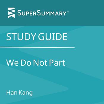 This audiobook is narrated by a digital voice. Analyzing literature can be hard — we make it easy! This in-depth study guide offers summaries & analyses for all chapters of We Do Not Part by Han Kang. Get more out of your reading experience and build confidence with study guides proven to: raise students’ grades, save teachers time, and spark dynamic book discussions. SuperSummary Study Guides are written by experienced educators and literary scholars with advanced degrees in relevant fields. Here's what's inside: Chapter-by-chapter summaries— Refresh your memory of key events and big ideas Comprehensive literary analysis — Unlock underlying meaning Examination of key figures in the text — Follow character arcs from tragedy to triumph Discussion of themes, symbols & motifs — Connect the dots among recurring ideas Important quotes with explanations — Appreciate the meaning behind the words Book Club Questions — Spark engaging discussions and reflection