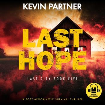 This audiobook is narrated by a digital voice. When survival means becoming what you fear most... In a desperate bid to save humanity's last refuge, Devon Myers has infiltrated the ruthless Sons of Solomon who now control the town of Hope. But when a twisted general named Mendoza arrives with an army at his back and genocide in his heart, the line between resistance and collaboration begins to blur. Last Hope is a gripping tale of impossible choices in a post-apocalyptic America. As Devon struggles to protect those he loves while maintaining his cover, Paul Hickman embarks on a desperate mission to rescue a man who might hold the key to defeating the Sons. With time running out and enemies closing in from all sides, both men must decide how much of their humanity they're willing to sacrifice in the name of freedom. In this penultimate installment of the Last City series, alliances shift like desert sands, and the price of victory may be too high to bear. From clandestine resistance meetings to desperate firefights, from brutal interrogations to daring rescues, Last Hope builds to a climactic confrontation that will forever change the fate of Hope and its people. Perfect for fans of "The Stand" and "The Road," this pulse-pounding fifth book asks the ultimate question: In a world ruled by monsters, what does it take to remain human?