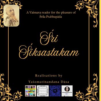 A Vaisnava reader for the pleasure of Srila Prabhupada Sri Chaitanya Sik?a??akam with original Sansnkrit, word-to-word transliteration, English Translation and personal Realisations “Realization means you should write, every one of you, what is your realization. What for this Back to Godhead is? You write your realization, what you have realized about K???a. That is required. It is not passive. Always you should be active. Whenever you find time, you write. Never mind, two lines, four lines, but you write your realization. Srava?a? kirtanam, writing or offering prayers, glories. This is one of the function of the Vai??ava. You are hearing, but you have to write also. Then write means smara?am, remembering what you have heard from your spiritual master, from the scripture. Srava?a? kirtana? vi??o?: (SB 7.5.23) about Vi??u, not for others. Don't write any nonsense thing for any nonsense man. Useless waste of time. Vi??u. Write about Vi??u, K???a.” (Srila Prabhupada - Lecture on Brahma-samhita, Verse 32 Excerpt -- Los Angeles, August 14, 1972) Even if my realisations are immature or sometimes childish, please forgive me. Even if they might be incomplete or lack-luster, please bare with this fallen servant of Srila Prabhupada.
