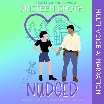 This audiobook is narrated by a digital voice. That's it! I'm done with men. I'll be better off dating myself. A weekend away at a secluded cabin to paint a new commission is the perfect way to kick off my “man-cott.” Or it would be if the man I most wanted to avoid, and couldn’t get over, wasn’t there at the same time. (This had meddling matchmaker Tillie’s name all over it. I’ll deal with her later.) And if the storm of the century hadn’t trapped us together. Alone. In the dark. With no distractions or interruptions. And only one bed. Ugh! Of all the people in the world to be stranded with, it had to be this arrogant oaf. The one I’d most like to strangle with my bare hands—if I could do it from a safe distance. Extendo arms would be helpful. Simply being in the same room with him is dangerous…to my heart, anyway. You see, not only is Nash Porter my sworn enemy, he’s also the one I’ve been in love with since grade school—my brother’s best friend. The guy who rejected me and destroyed my tender heart, yet was still there to taunt and tease me during my most embarassing moments. If I can just stay mad at him, I’ll be safe. It’s all I can do to keep from smacking the cocky smirk off his face whenever he glances my way. Better than kissing it off. At least, that’s what I tell myself. There’s no way we get out of this unscathed. Send help! Nudged is a sweet, forced proximity, brother’s best friend romantic comedy. It is loaded with witty banter and snark, laugh-out-loud moments, small-town charm, a loveable mutt, and swoony kisses. All the fun and feels, without the spice or swears. For lovers of Emma St Clair and Sariah Wilson. This audiobook was created with multi-voice AI giving each character a unique voice, like characters in a play, to make listening more interesting and enjoyable.