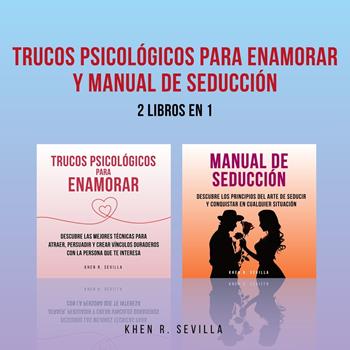 Este audiolibro incluye: Trucos Psicológicos Para Enamorar ¡Descubre los secretos ocultos de la psicología del amor y conquista corazones como nunca antes! ¿Qué harías si pudieras enamorar a cualquier mujer que desees? ¿Cómo te sentirías al tener el poder de atraer a alguien con solo unas pocas palabras? ¿Y si te dijera que todo esto es posible? Este audiolibro revela las estrategias más efectivas para conquistar y mantener el amor de tu vida. Aquí hay solo un vistazo de lo que aprenderás: Cómo lograr que te admiren instantáneamente. El efecto Benjamin Franklin: cómo pedir ayuda puede fortalecer tu conexión. Revelar tu verdadera esencia: comparte historias personales y crea una confianza profunda. Técnicas para dominar la ansiedad y evitar cometer errores en el camino del amor. BONUS sorpresa para que tengas una herramienta más para persuadirlas. Manual De Seducción ¡Descubre el Arte de la Seducción y Conquista tu Vida! ¿Quieres entender al sexo opuesto y convertirte en un maestro de la seducción? ¿Deseas aplicar estrategias efectivas en todos los ámbitos de tu vida? ¿Estás listo para alcanzar el éxito en tus relaciones personales y profesionales? ¿Por qué deberías escuchar este audiolibro y cómo puedes aprovecharlo al máximo? Aquí tienes algunas razones convincentes: Aprende el arte de la seducción y descubre cómo entender al sexo opuesto para conquistarlo. Desarrolla habilidades seductoras que pueden ser aplicadas en todos los ámbitos de tu vida. Descubre cómo fomentar tu autoestima y liberarte de la necesidad de validación externa. Evita caer en la trampa de las súplicas y aprende a comunicarte de manera efectiva. Evita ser aburrido y monótono al mantener siempre viva la chispa de la seducción.