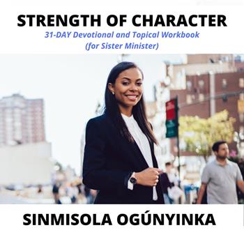 Strength of Character is a devotional and workbook for Sister Minister. First published in 2003, it remains relevant today as it is a character-based devotional. It is meant to be used by individuals to help build up their devotion and daily walk with God. It is useful during family devotions, small-group discussions, bible classes, house fellowships, and koinonia, as well. Consisting of 31 days, each designed to assist in the devotion and discussion sessions and to serve as a guideline to our prayer time. It is rich and should be used for the whole day, not necessarily during the quiet time alone. Each day consists of:Memory verse: Endeavour to memorize the day’s memory verse and confess it throughout the day.Character study: Compare the character for the day with the topical study. Learn from them either to emulate the positive attitude or to avoid the negative attitude. Bible verses: Listen to the bible verses for further study.Target and admonition: Meditate on these for a few minutes and learn a lesson for yourself.Search yourself: Answer the questions sincerely and rate yourself.Prayer: Take these prayer points, using the prayer plan.