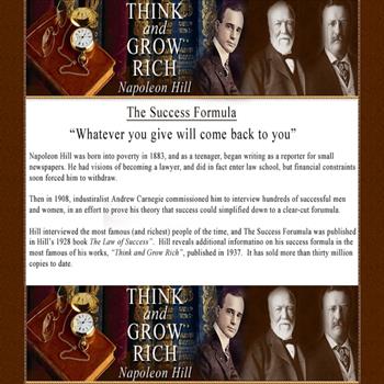 Everything we see around us - all the great inventions, the cities, buildings, whatever you care to name, started as a thought in someone's mind. So to think something is to begin the creation of it! This applies to anything in life. It is the concept of this book. Get your mind right, and think of what you want to achieve - success, happiness, wealth, and follow it up with the right action, and you can do it!!! This book will describe the process - written by Napoleon Hill in 1937. Many still find the book's philosophy of positive thinking and its steps for achieving wealth both relevant and life-changing. The book is based on the principle in life, that our thoughts become our reality, and offers a plan and principles for transforming thoughts into riches, including visualization, affirmation, creating a Master Mind group, defining a goal, and planning. Hopefully this book will motivate the reader to start the journey to success by thinking aright ....