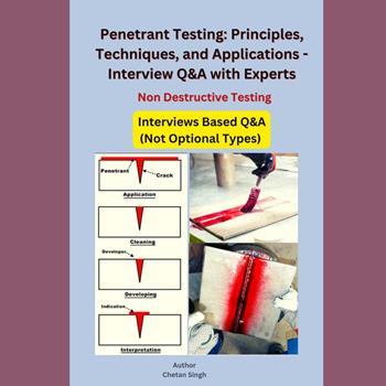 This audiobook is narrated by a digital voice. Penetrant Testing: Principles, Techniques, Applications and Interview Q&A with Experts" is a comprehensive guide that provides a detailed overview of the principles, techniques, and applications of liquid penetrant inspection (LPI) or dye penetrant testing (DPT) for detecting surface-breaking defects in materials. In addition to covering the fundamental concepts of penetrant testing, this NDT book also features a series of exclusive interview Q&A sessions with leading experts in the field. The experts share their insights and experiences on a wide range of topics related to penetrant testing, such as best practices, emerging technologies, and industry applications. The non destructive testing book is divided into several chapters that cover different aspects of penetrant testing, including the penetrant testing process, penetrant testing materials, surface preparation and test conditions, evaluation of indications, applications of penetrant testing, quality assurance and training, and future developments and emerging technologies. With its practical insights and detailed information, "Penetrant Testing: Principles, Techniques, Applications and Interview Q&A with Experts" is an indispensable resource for engineers, technicians, inspectors, and anyone who is involved in non-destructive testing (NDT) and quality control.