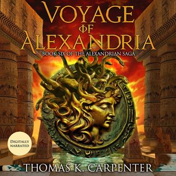 This audiobook is narrated by a digital voice. For thousands of years, myths have told the stories of the beasts at the edge of civilization: krakens, cyclops, even the fearsome dragon. Now, Heron of Alexandria must confront those myths aboard Hoth the Black's iron ship, the Jörmungandr, as they flee the remnants of the Roman navy bent on revenge. As she struggles to recover from her horrific injuries, and the repercussions of what happened in the Roman Senate, she must decide - once and forever - what she truly believes in. Series Order: Book One - Fires of Alexandria Book Two - Heirs of Alexandria Book Three - Legacy of Alexandria Book Four - Warmachines of Alexandria Book Five - Empire of Alexandria Book Six - Voyage of Alexandria Book Seven - Goddess of Alexandria