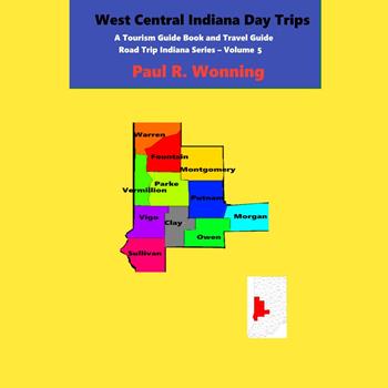 This audiobook is narrated by a digital voice. Take a fun tour through the rich history of Indiana using West Central Indiana Day Trips as your guidebook. This tourism guide will help visitors find all of the historical treasures in south central Indiana. West Central Indiana Cities and Towns West Central Indiana has some wonderful cities and towns ranging from charming small towns like Rockville, Brazil and Spencer to larger cities like Terra Haute, Crawfordsville and Martinsville. Each of these towns and cities has many things to do for your family as it explores the regions roads and highways. West Central Indiana Wineries West Central Indiana has several interesting wineries that produce some fascinating wines. West Central Indiana State and Local Parks The region has several state parks and forests including Indiana's first state park, McCormick's Creek and rugged Turkey Run State Park. West Central Indiana Museums and Historic Sites Explorers in the area can stage a day trip to learn the region's rich history by visiting the museums and markers located in the various cities and towns of West Central Indiana. Many host interesting family events that are fun and educational The counties included in this historical travel book include: Parke Clay Fountain Mongomery Morgan Owen Putnam Sullivan Vermillion Vigo Warren