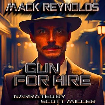 Gun For Hire by Mack Reynolds - A gun is an interesting weapon; it can be hired, of course, and naturally doesn't care who hires it. Something much the same can be said of the gunman, too... Joe Prantera called softly, "Al." The pleasurable, comfortable, warm feeling began spreading over him, the way it always did. The older man stopped and squinted, but not suspiciously, even now. The evening was dark, it was unlikely that the other even saw the circle of steel that was the mouth of the shotgun barrel, now resting on the car's window ledge. "Who's it?" he growled. Joe Prantera said softly, "Big Louis sent me, Al." And he pressed the trigger. And at that moment, the universe caved inward upon Joseph Marie Prantera. There was nausea and nausea upon nausea. There was a falling through all space and through all time. There was doubling and twisting and twitching of every muscle and nerve. There was pain, horror and tumultuous fear. And he came out of it as quickly and completely as he'd gone in. He was in, he thought, a hospital and his first reaction was to think, This here California. Everything different. Then his second thought was Something went wrong. Big Louis, he ain't going to like this. He brought his thinking to the present. So far as he could remember, he hadn't completely pulled the trigger. That at least meant that whatever the rap was it wouldn't be too tough. With luck, the syndicate would get him off with a couple of years at Quentin. A door slid open in the wall in a way that Joe had never seen a door operate before. This here California. The clothes on the newcomer were wrong, too. For the first time, Joe Prantera began to sense an alienness—a something that was awfully wrong.