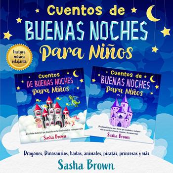 ¿Tu hijo tiene problemas para conciliar el sueño? ¿No te deja dormir por las noches? ¿Te gustaría que tu niño o niña aprenda poderosas lecciones de vida? Si las respuestas son afirmativas, entonces Cuentos de buenas noches para niños: 2 libros en 1 es perfecto para ti y debes seguir escuchando. El descanso es muy importante para el crecimiento de cada niño, pero a veces es muy difícil para ellos poder relajarse y dormir óptimamente, por eso, el disfrutar de historias a la hora de ir a la cama es de gran ayuda. En este maravilloso audiolibro encontrarás una gran variedad de divertidos cuentos, donde cada uno tiene su propio mundo y personajes, en temas como Incluye Cuentos de animales, hadas, aventuras, fantasías, dragones, piratas, príncipes, princesas y más A los niños/as les encanta Cuentos de buenas noches porque: Disfrutan de tiempo de calidad en familia Los ayuda a caer de forma rápida en un sueño profundo y reparador Liberan la ansiedad y el estrés Aprenden valiosas lecciones de vida sobre la autoestima, confianza, amistad y el amor propio Las historias contenidas en Cuentos de buenas noches para niños: 2 libros en 1 son fáciles de leer y aptas tanto para niños como para niñas de cualquier edad, ya que el lenguaje es sencillo. Dicho esto, en este increíble audiolibro encontrarás la mejor colección de historias para eliminar la ansiedad y pasar una noche de sueño profundo. Cada historia del audiolibro contiene música relajante, lo que ayudará a que tanto tú como tu hijo disfruten de un óptimo descanso. ¡Si deseas que tú y tu niño disfruten de un sueño profundo y relajante, deja que Cuentos de buenas noches para niños desliza hacia arriba y adquiere tu copia ahora!