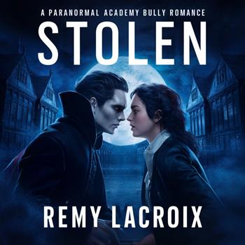 This audiobook is narrated by a digital voice. Thrown into a sinister academy for vampires, a human woman finds herself a captive in a gilded cage. Surrounded by powerful, predatory bloodsuckers, she becomes their obsession, their plaything. Can she survive the intoxicating allure of her captors, or will she succumb to their demands? This dark, reverse harem romance will ignite your passions as you delve into a world of forbidden desire and dangerous games. Will she find a way to escape, or will she become forever lost in their shadows? Find out in Stolen, the first book in the Academy of Vampires series.