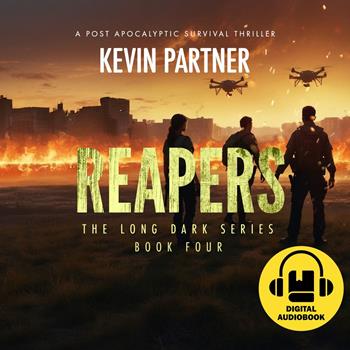 This audiobook is narrated by a digital voice. The world thought it had weathered the Long Dark. They were wrong. Solly Masters, once lost and alone, has found purpose leading a thriving community in the ruins of what was. But their hard-won peace is shattered by the arrival of a ghost from the past: Scott Lee, carrying a chilling warning. The Lee Corporation, responsible for the technology that plunged the world into chaos, is back. They're building an army, twisting their insidious creations into weapons – the Reapers. And they're coming for anyone who stands in their way. As a deadly flu sweeps through the land, Solly and his community face an impossible choice: hunker down and risk being picked off one by one, or fight back against an enemy with the power to control minds and rewrite reality itself. In Reapers, the fight for survival takes a terrifying turn as complex characters grapple with impossible choices in a world stripped bare. If you crave post-apocalyptic thrillers that blend high-stakes action with thought-provoking themes, Reapers will leave you breathless until the very last page.