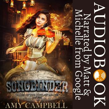 This audiobook is narrated by a digital voice. A quest for redemption leads to a sinister world of dark academia. Blaise and Jefferson hoped to escape their past's dark shadows, but fate had other plans. An old foe resurfaces, unraveling secrets that threaten to tear them apart. Struggling with guilt, Jefferson seeks redemption with his music-mage sister. Meanwhile, an unexpected call to duty propels Blaise on a journey of his own. Their separate ventures lead both men to a world of dark academia, where ambition intertwines with twisted love. Captured by a deranged alchemist, they become subjects in his warped experiment. Against a backdrop of alchemical machinations, the pair must rekindle their trust. Love, magic, and melodies collide in a symphony against the twisted designs of their captor. As the cruel experiment reaches its crescendo, will Blaise and Jefferson find a way to orchestrate an escape and face the music of their past? Or will they become victims of the alchemist’s chilling finale? Songbinder is the next captivating chapter in the Tales of the Outlaw Mages series, where the enchantment of the Old West and the depth of heartfelt bonds create a tale of thrilling adventure.