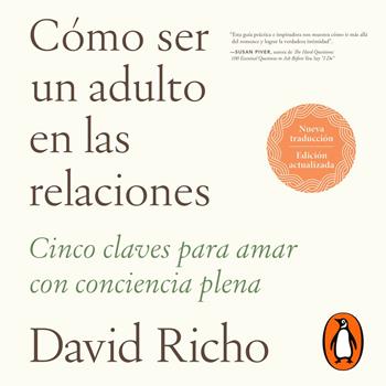 Nueva traducción de este bestseller sobre el amor y las relaciones del psicoterapeuta David Richo, que ha tocado cientos de miles de vidas con sus profundos y prácticos consejos. Esta edición incluye material nuevo y revisado sobre cómo vivimos y amamos en la actualidad, manteniendo su mensaje principal de fomentar la conciencia plena en nuestras relaciones. Un nuevo prefacio explora la experiencia de David Richo con el libro a lo largo de los años y destaca las principales actualizaciones de esta edición, como la atención al mundo de los sitios virtuales de citas y los estilos de comunicación modernos, además de ofrecer nuevas perspectivas sobre la ira y cómo terminar relaciones. “La mayoría de las personas ven el amor como un sentimiento, pero más que un sentimiento el amor es una forma de estar presente”, dice Richo. Cómo ser un adulto en las relaciones explora cinco pilares del amor consciente y el papel crucial que estos desempeñan en nuestras relaciones. El amor adulto se basa en un compromiso mutuo con lo que Richo denomina “las cinco A”: atención, aceptación, aprecio, afecto y autorización. Repleto de ejercicios prácticos para parejas y solteros, este libro ofrece una visión esperanzadora sobre el viaje del amor a lo largo de la vida. Entre los temas tratados se incluyen: • Tomar conciencia de nuestros patrones de relación y cómo se asocian con nuestra infancia • Reconocer y atraer a alguien que pueda mostrar un amor adulto • Comprender las fases que atraviesan las relaciones • Crear y mantener límites saludables • Superar el miedo al abandono y la asfixia emocional • Expresar la ira y otras emociones de manera adulta y amorosa • Sobrevivir a las rupturas manteniendo nuestra autoestima intacta • Entender el amor como un viaje espiritual