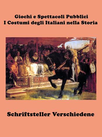 Prosegue il nostro viaggio negli usi e costumi di Italia. Questa volta l’argomento è quello dei Giochi e degli Spettacoli Pubblici. Gli argomenti trattati sono: La Corte Bandita, I Tornei, Il Torneo di Torino del 1842, Giostre e Corse, La Moresca, Il Ballo delle Sciabole, Il Carosello, Il Gioco della Pugna, Il Gioco del Ponte, Il Tiro con l’arco e la balestra, Altri giochi, I Fuochi d’Artificio, Le Serenate, Il Gioco del Calcio, La Caccia, I Balli Popolari, I Banchetti, Il Teatro, Iconografia di Maschere Teatrali, Grazia e Amore, I Romei, La Follia e Grillincervello, Pantaleone, Colombina e Florindo, Estella e Memorino, Violante e il Bellimbusto, Lauretta e La Zingarella, Angelica, Finetta e Dulcamara, Il Pagliaccio e Rosaura, Il Paggio e La Cinese, L’Incognita e Arlecchino, Donna Ortensia e Ammazzasette, La Schiava e Tartaglia, La Fioraia e il Postiglione, Estratti dal Carnevale Italiano di Ignazio Cantù, Feste Antiche: I Baccanali, Feste Antiche: I Saturnali, Feste Antiche: I Lupercali, Feste Antiche: Le Strenne, Feste Superstiziose, La Festa dei Pazzi, La festa dell’Asino, La Festa del Cero, Teatro, Teatri Pubblici Antichi, I Pellegrini, I Flagellanti e I Misteri.