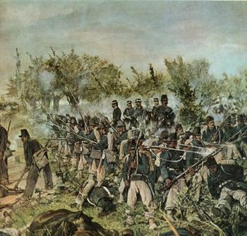 Al principio della campagna del 1866 le truppe Italiane erano disposte nel seguente modo: il corpo d'armata di Lamarmora, effettivo comandante in capo, benchè il comando nominale appartenesse al re, era a Parma, a Piacenza, a Lodi ed a Cremona. Il corpo di Cialdini a Bologna ed a Ferrara: ventiduemila volontarii attorno Como, presso l'estremità settentrionale della penisola, o, diremo, nel ginocchio dell'imaginario stivale a cui si paragona la forma dell'Italia; altri ventiduemila attorno a Bari, all'estremità meridionale, ossia nel tallone; e la flotta a Taranto, cioè più lontana ancora dal futuro teatro della guerra. Distanza fra i due estremi dell'esercito italiano, da Como sino a Gioja del Colle nella Terra di Bari, 860, dico ottocentosessanta chilometri!