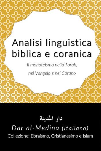 Nelle vostre mani un'analisi linguistica biblica e coranica dei testi della Torah (Dt 6,4), del Nuovo Testamento (Marco) e del Corano (112.).1), in modo comparativo e non confessionale troverete i progressi delle ultime ricerche nelle lingue moderne e le analisi della Torah (???????), del Vangelo (e?a???????) e del Corano (??????) nelle loro lingue originali, così come nei loro manoscritti, traduzioni e interpretazioni.