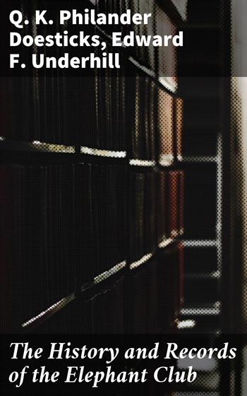 The History and Records of the Elephant Club presents an engaging tapestry of 19th-century social satire, blending sharp wit and astute commentary on the cultural idiosyncrasies of the era. This eclectic anthology showcases a variety of literary styles, ranging from biting humor to poignant critique, capturing the ephemeral spirit of a transformative period. The collection explores themes of social eccentricities and human folly, providing a lens into the everyday, yet extraordinary, experiences filtered through a comedic perspective. Notable pieces within this anthology shine with their clever narratives and thought-provoking critiques, offering a diverse array of reflections on the human condition. Contributed to by the inventive minds of Q. K. Philander Doesticks and Edward F. Underhill, The History and Records of the Elephant Club draws from their nuanced understanding of satire and societal observation. Both authors, renowned for their distinctive contributions to literary humor and social critique, breathe life into the anthology with their unparalleled ability to blend humor with keen insights. Rooted in the larger context of 19th-century literary and cultural movements, their works within this collection exemplify a confluence of contemporary satire and historical intrigue, inviting readers into an expertly crafted narrative world. For those eager to explore the rich vibrancy of 19th-century satire, this anthology offers an invaluable foray into the multifaceted perspectives unique to this period. Whether approached for educational enrichment or leisurely exploration, The History and Records of the Elephant Club stands as a comprehensive gateway to understanding the peculiar nuances of the time through the prism of humor and irony. Readers are invited to delve into this cohesive yet diverse collection, where the voices of Doesticks and Underhill interlace, presenting an enlightening dialogue that transcends mere comedic storytelling.