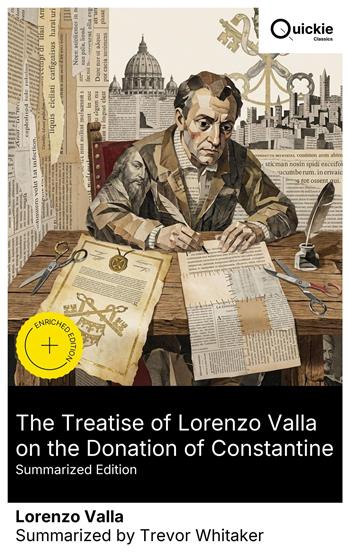 In The treatise of Lorenzo Valla on the Donation of Constantine, the humanist subjects the most consequential medieval charter to a stringent philological audit. By scrutinizing vocabulary, syntax, and legal formulae, he shows the Latin to be medieval, not Constantinian, exposing anachronistic offices, titles, and procedures. Fusing Ciceronian elegance with forensic invective, Valla places textual evidence above tradition, a hallmark of early Renaissance ad fontes scholarship. Valla, trained in rhetoric and philology and moving between curial and courtly service, composed the treatise amid the contests of the 1440s. As secretary to Alfonso of Aragon in Naples, he deployed philology against papal temporal claims. His Elegantiae and later scriptural notes reveal the habits behind it: classical norms, anti-scholastic polemic, and institutional acuity. Recommended to readers of Renaissance humanism, church history, and legal culture, this work models the power of language history to test authority. It remains a concise primer in critical method and a landmark in the politics of knowledge. Anyone curious how arguments about words reshape institutions will find it incisive, learned, and bracing. Quickie Classics summarizes timeless works with precision, preserving the author's voice and keeping the prose clear, fast, and readable—distilled, never diluted. Enriched Edition extras: Introduction · Synopsis · Historical Context · Author Biography · Brief Analysis · 4 Reflection Q&As · Editorial Footnotes.