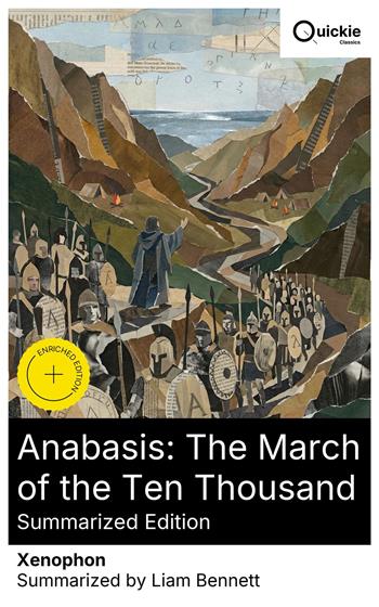 Anabasis: The March of the Ten Thousand narrates Xenophon's service in Cyrus the Younger's bid for the Persian throne and the mercenaries' retreat from Cunaxa to the Black Sea. In lucid Attic prose, it blends battlefield reportage, logistics, and set speeches with ethnographic and geographic observation. Its third-person self-portrait, ritual markers, councils, and the cry 'Thalatta!' place it between memoir and historiography in the post–Peloponnesian War world. An Athenian gentleman-soldier and pupil of Socrates, Xenophon joined at a friend's urging after consulting Apollo at Delphi. When the Greek generals were seized, he was elected to help lead the retreat. Experience of command, piety, and improvisation—later deepened in Spartan exile at Scillus—shapes the work's pragmatic tone and aligns it with his Hellenica, Cyropaedia, and Socratic writings on authority and self-discipline. Essential for students of classical history, military studies, and leadership, this brisk, unfussy narrative rewards attention to tactics, morale, and persuasion. It suits courses on Greek prose and empire and general readers seeking an adventure whose intelligence matches its drama. With clean architecture and unshowy wisdom, Anabasis remains a guide to surviving crisis and finding a way home. Quickie Classics summarizes timeless works with precision, preserving the author's voice and keeping the prose clear, fast, and readable—distilled, never diluted. Enriched Edition extras: Introduction · Synopsis · Historical Context · Author Biography · Brief Analysis · 4 Reflection Q&As · Editorial Footnotes.